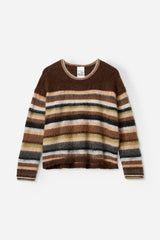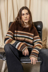BOLETTE is a super soft striped pullover knitted in a fuzzy mohair blend.
