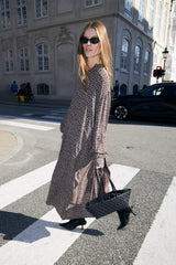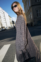Cut in a floaty silhouette with a round neck and buttoned placket, long sleeves with cuffed detailing, and discreet side seam pockets. Designed for a relaxed fit that moves beautifully with the body.