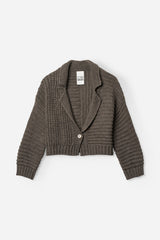 Designed with a soft collar, full-length sleeves and a wide ribbed hem. The textured knit structure adds character, while the single-button closure keeps the silhouette clean and effortless.