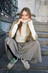 HAILEY is a midi-length skirt crafted from soft baby corduroy.