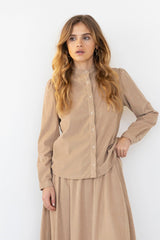 Skye is a classic shirt with round neck, buttons down and slightly rounded hem. The quality is baby corduroy with a soft hand feel and a very comfortable fitting.