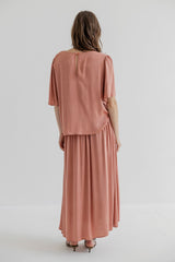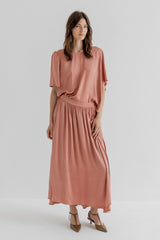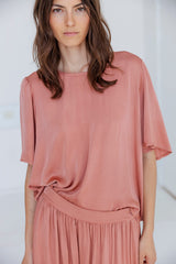 Cut in a delicate viscose-silk blend from Italy and garment dyed for a soft hand feel. Designed with a round neckline, back slit with loop-button closure and gentle frills at the shoulders. Slightly longer at the back for a flattering shape.