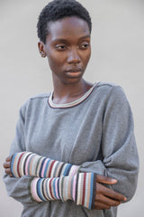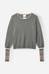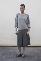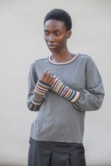 A relaxed long-sleeved knit blouse with our signature striped cuffs and neckline detail. The silhouette is straight with full-length sleeves and a soft, easy fit that falls just below the hip.