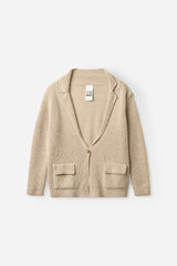 SMITH is a relaxed knitted blazer with a structured silhouette