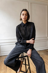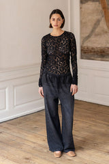 POLLY pants are our popular PJ Pants in a super soft organic cotton denim. The pants have straight legs and elastic waist with tie-strings. The pants have side pockets and are super comfortable.
