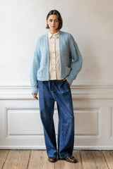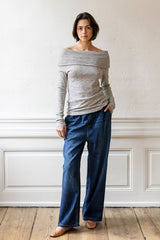 POLLY pants are our popular PJ Pants in a super soft organic cotton denim. The pants have straight legs and elastic waist with tie-strings. The pants have side pockets and are super comfortable.