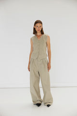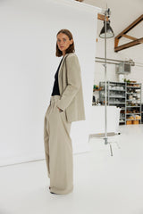 The TAILOR suit pants has got two slanted side pockets, front pleats, zipper and one button fastening with wide legs. The pants have belt straps and two pockets at back. For a complete set match the pants with the FERGIE waistcoat and FINNEA jacket.