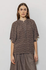 SANDIE is a feminine short-sleeved shirt with a soft A-line silhouette.