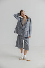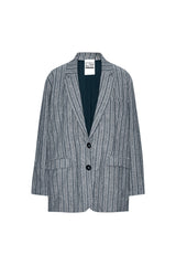 FINNE is a single breasted pin striped blazer in an Italian cotton-linen quality. The blazer has a relaxed fit, two-button closure and two welt pockets with flaps at front. The blazer has lining inside in a matching color.