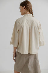 HORTENSE is a new shirt in our basic collection of organic cotton. The shirt has ¾ sleeves, one pocket at front and a big pleat at back. The quality is soft and comfy.