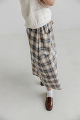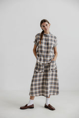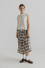 MADGE is new waffle cotton skirt with elastic waist and two front pockets. The fabric is from Italy and has stripes on one side and checks on the other side. The skirt is not reversible. The yarn is very fine which gives a soft texture and a comfortable fit.
