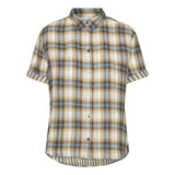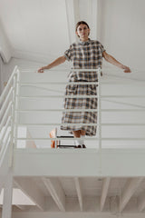 MESSA is new waffle cotton shirt with collar, buttons and short sleeves. The fabric is from Italy and has stripes on one side and checks on the other side. The shirt is not reversible but if folding the sleeves the other side of the fabric is visible. The yarn is very fine which gives a soft texture.