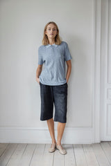 SILLE is a stripped jersey polo shirt with short sleeves and collar and buttons in matching colors. The shirt is made of 100% organic cotton and very soft. The shirt is garment dyed and pre-washed.