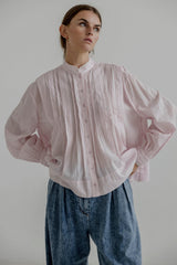 GISELE is a long sleeved boho shirt with a lot of pleats at front and back. The shirt has embroideries at collar and cuffs - and is made in a light organic cotton quality with a flowy feeling.
