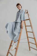HORTENSE is a shirt in our basic collection of organic cotton. The shirt is designed with collar, full button closure, three quarter sleeves and a chest pocket. On the back the shirt has a soft pleat that creates volume and an easy drape.