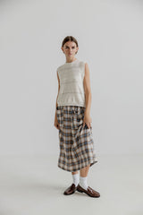 AGGIE is a soft cotton waistcoat made from cotton and acrylic. The cotton is Ecotec cotton and the knitwear is made in Italy. The knit has knitted patterns, crewneck and a ribbed trim.