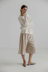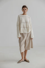 AGNES is a long sleeved soft cotton pullover made from cotton and acrylic. The cotton is Ecotec cotton and the knitwear is made in Italy. The knit has knitted patterns, crewneck and a slim ribbed trim.