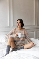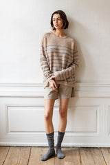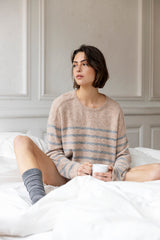 CARRIE is a new striped winter pullover with round neck and long sleeves.The delicate baby alpaca makes the knit super soft and comfortable. The knit is a bit longer at the back than at front.