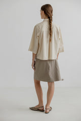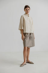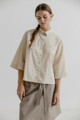 HORTENSE is a new shirt in our basic collection of organic cotton. The shirt has ¾ sleeves, one pocket at front and a big pleat at back. The quality is soft and comfy.