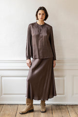 ROSITA is a loose feminine shirt with a regular fit. The delicate fabric is made from an Italian viscose/silk mix and the solid colors are garment dyed with a special technique. The digital leopard prints are made in Italy. The shirt has a placket down at front and elastic around the neck line to create small frills. There is also elastic cuffs and the hemline is slightly rounded. The Rosita shirt is easy to match with our Ronia skirt and pants.