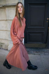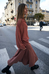 PAM is a soft denim skirt with a flared silhouette and structured feel