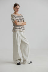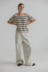 AERO is a soft short sleeve knit made from cotton and acrylic. The knit has stripes in 3 colors and a knitted hole patterns. The shirt has slim ribbed trims at sleeves and hem. The cotton is Ecotec cotton and the knitwear is made in Italy.