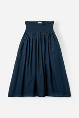 CANDIE is a soft, gathered skirt with a wide smocked waistband and an A-line shape.
