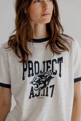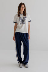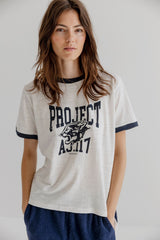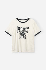 CARA is a casual tee in soft cotton jersey with contrast ribbed edges and a front logo print.