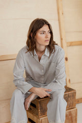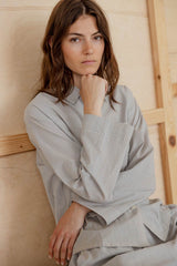 Cimber is a classic striped voile shirt in lightweight soft cotton. Designed with a collar, full button closure and a single chest pocket. The shirt is slightly rounded at hem. The relaxed fit and soft drape give the shirt an effortless expression, while the fine stripe texture adds subtle structure. The shirt can be paired with Cindie skirt or Cadera pants for a complete set.