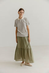 SILLE is a stripped jersey polo shirt with short sleeves and collar and buttons in matching colors. The shirt is made of 100% organic cotton and very soft. The shirt is garment dyed and pre-washed.