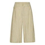 FIGO are shorts with fine pinstripes in an Italian cotton/linen quality. The shorts are wide-legged with pleats at front and a single welt pocket at back. At front there is a hidden zipper closure and a button.