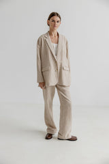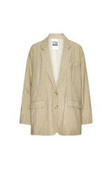 FINNE is a single breasted pin striped blazer in an Italian cotton-linen quality. The blazer has a relaxed fit, two-button closure and two welt pockets with flaps at front. The blazer has lining inside in a matching color.