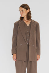 The FINNEA suit jacket a double breasted closure with two front flap pockets and softly padded shoulders. The jacket has full lining. For a complete set wear the jacket with TAILOR suit pants and FERGIE waistcoat.