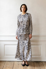 ROSITA is a loose feminine shirt with a regular fit. The delicate fabric is made from an Italian viscose/silk mix and the solid colors are garment dyed with a special technique. The digital leopard prints are made in Italy. The shirt has a placket down at front and elastic around the neck line to create small frills. There is also elastic cuffs and the hemline is slightly rounded. The Rosita shirt is easy to match with our Ronia skirt and pants.