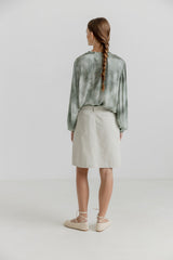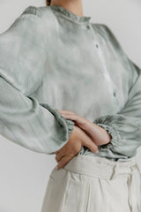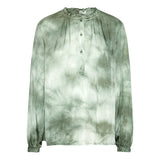 ROSITA is a loose feminine shirt with a regular fit. The delicate fabric is made from an Italian viscose/silk mix with a beautiful tie dye print. The shirt has a placket down at front and elastic around the neck line to create small frills. There is also elastic cuffs and the hemline is slightly rounded.