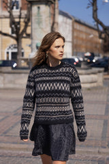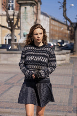 CANA is a pullover knit with a straight silhouette and regular fit. The delicate baby alpaca makes the knit super soft and comfortable. The knit has a beautiful structured pattern and a small rib at neck, sleeves and bottom.