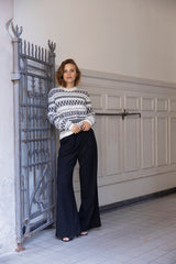 TINE pants has a loose straight fit with many beautiful details. They have darts in the front for a feminine and elegant look. There are also two front pockets and two closed back pockets for detailing. The pants are closed with a zipper and button in the front. The fabric is super soft and the pants can be worn both low waist or high waist with the adjustable belt that comes with.